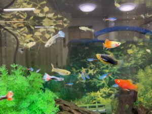 が設置され、現在は、ネオンテトラ、プラティー、ヤマトヌマエビ、最近は職員からの寄付のグッピーを飼育