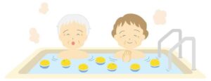 本日12月22日は冬至の日。ゆうあいの郷では、今週の入浴は、湯船にゆずを入れて、香りを感じながら
