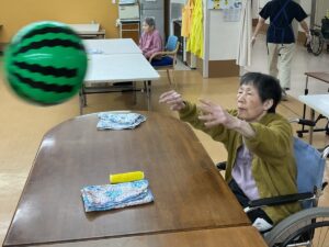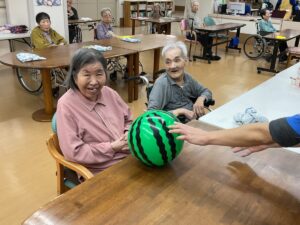 ルを手で打ち返すご利用者もいたり様々でした。皆様、笑顔で楽しまれていました。