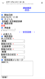 安否確認の登録訓練を実施しました。