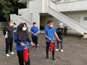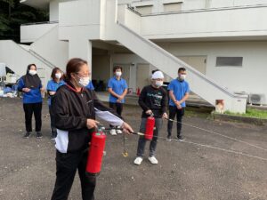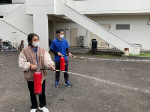 練が終了しました。なお、尚、職員の水消火器を使用した初期消火訓練も、期間も設け、併せて行いま
