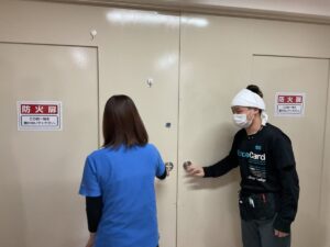 ションを行い、理解を深めることができました。また、施設のラウンドにおいて非常食の備蓄倉庫、停