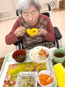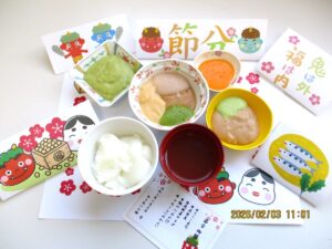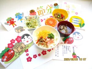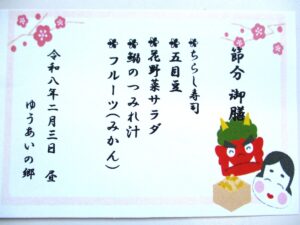さて、2月3日、ゆうあいの郷の昼食は、2月度の行事食の日でした。行事食のテーマはもちろん”節分”であり