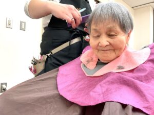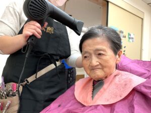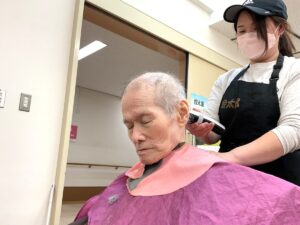 ゆうあいの郷では、”訪問美容サービス金太郎さま”に依頼しての訪問美容が、毎月2回jほど開催されて