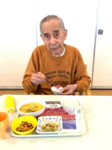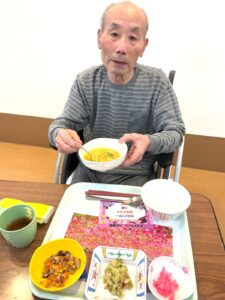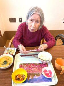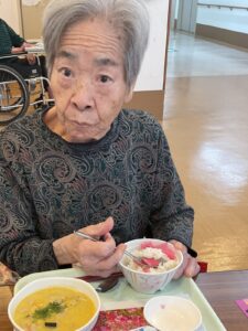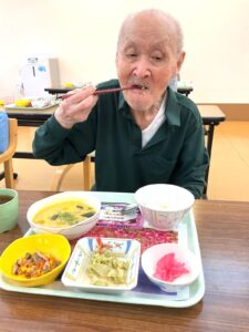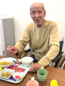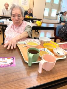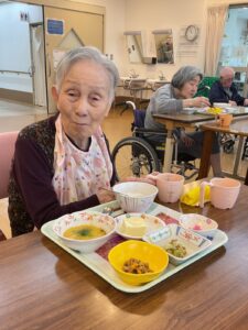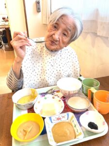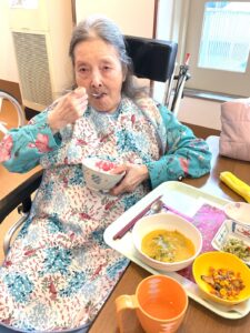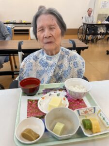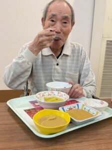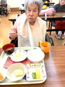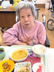 皆様おいしそうに召し上がられていました。また、おやつには、かぼちゃのプリンを召し上がって頂きま