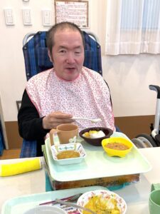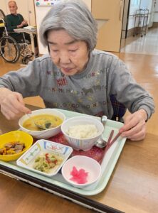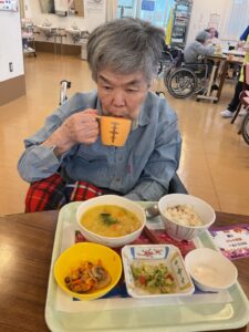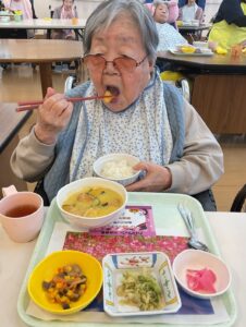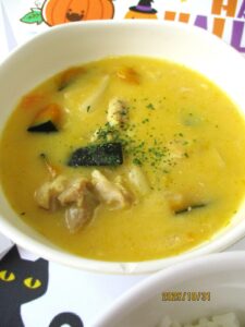 かぼちゃ、鶏肉、玉ねぎ、にんじんの素材の甘さが絶妙のハーモニーをかなで、ご利用者の胃袋を満