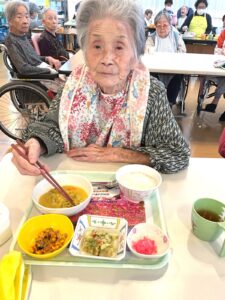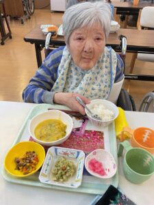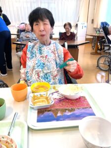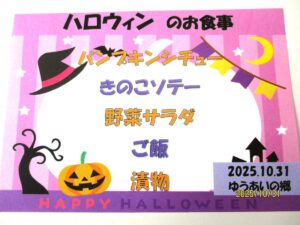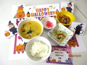 そして、ゆうあいの郷での昼食は、ハロウィンをテーマとした行事食をご利用者の皆様に召し上がって