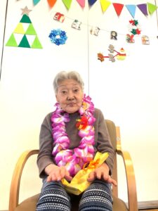 さて、8月の誕生日会は、1階フロア1名、2階フロア3名の総勢4名の75歳から90歳の皆様