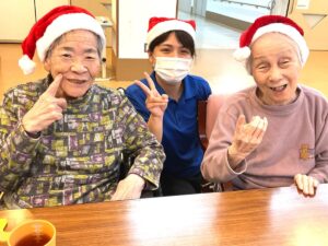 様には、サンタの帽子をかぶって頂いたり、職員もちょっとした仮装をしたりしました。