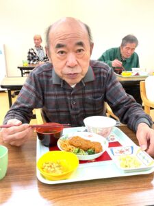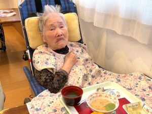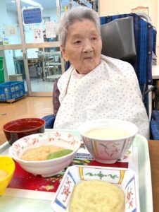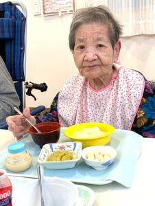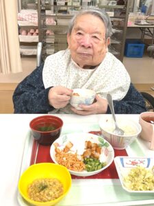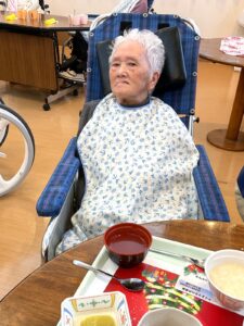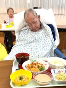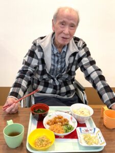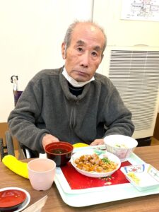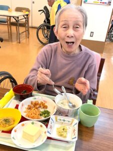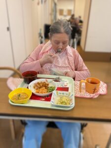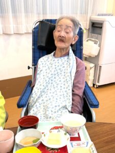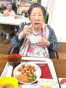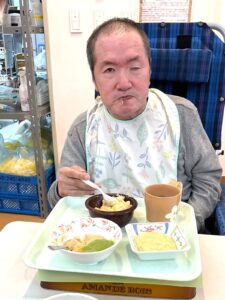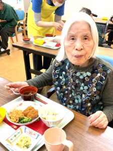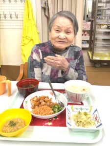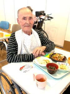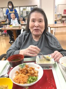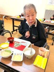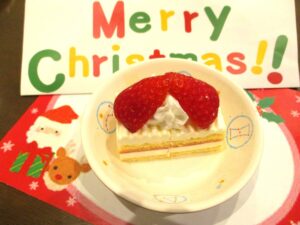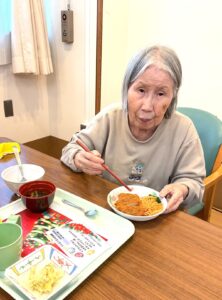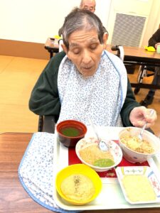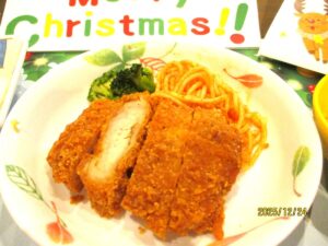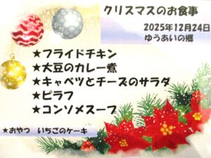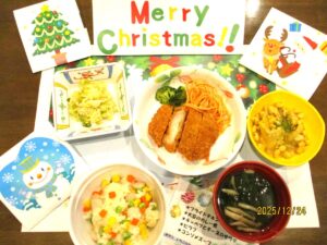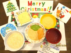 クリスマスのメニュー。視覚的にもいつも食事より楽しめ、笑顔が多くみられ、食事のペースが速いようでした。